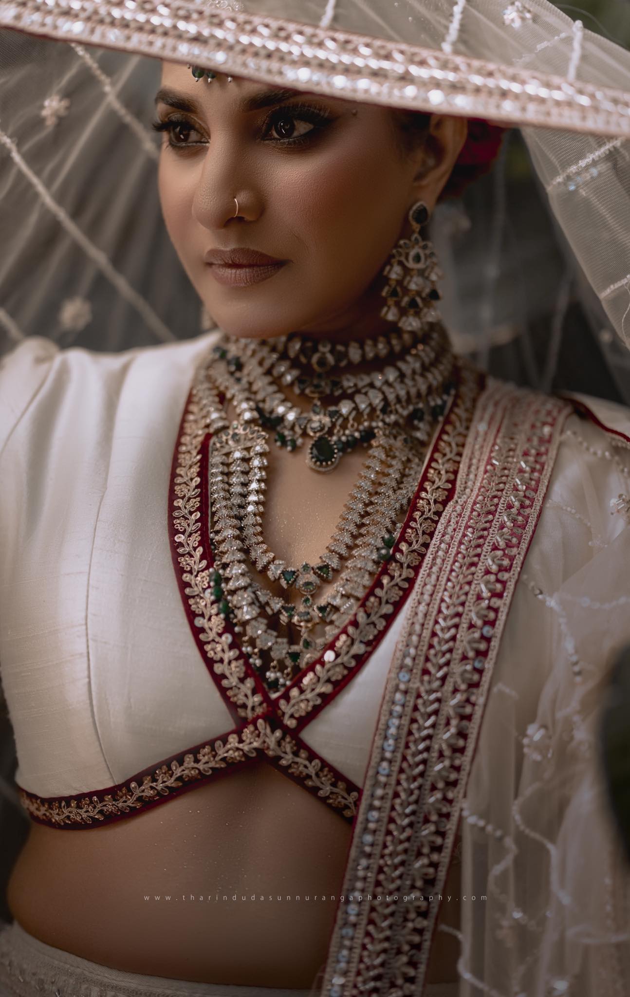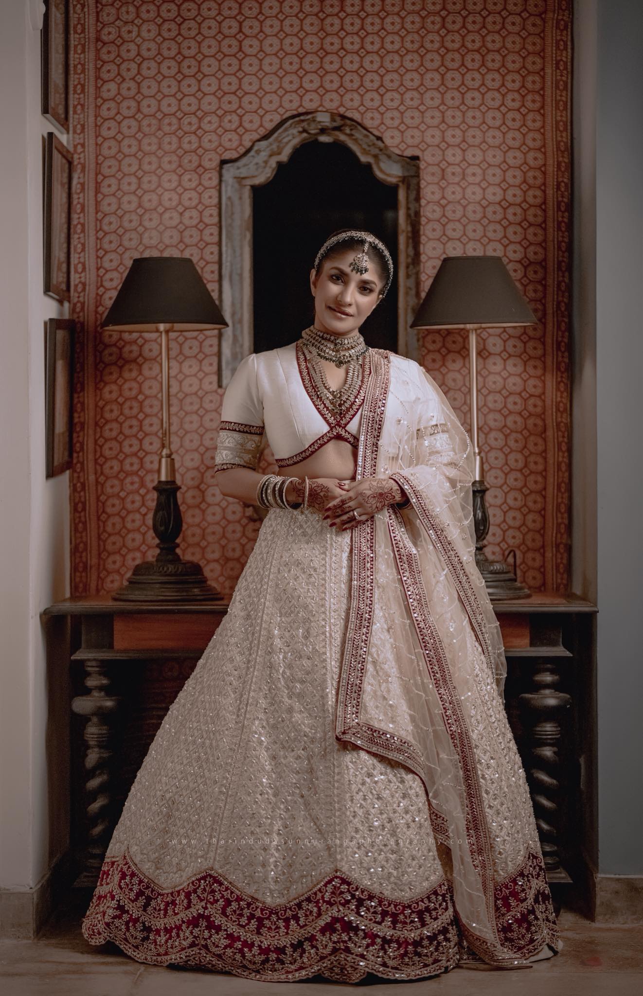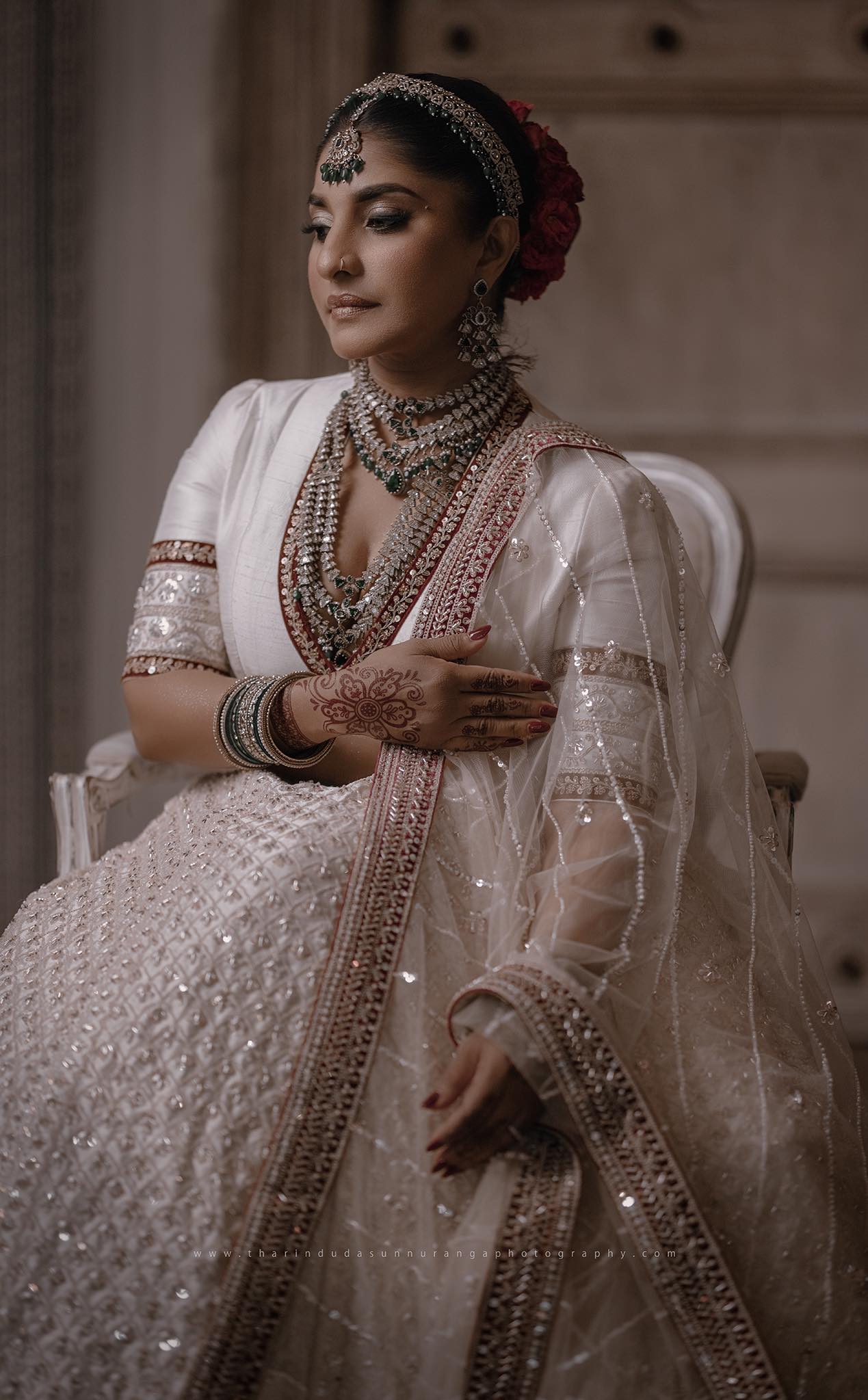 “අයිවරි වර්ණයෙන් හැඩවී, රන්වන් පැහැයෙන් ඔපවත් වූ මම… කාලයටත් වඩා පැරණි කතාවකට පියවර තැබුවෙමි. මගේ දෑස්වල තැවරුණු අඳුන රහස් රැගෙන ආවේය, මා පැළඳි ආභරණ උරුමය ගැන මුමුණන්නට විය. ඒ මොහොතේ… මම මනාලියක් ඇන්දා නෙවෙයි, මම ඇත්තටම මනාලියක් වුණා!”