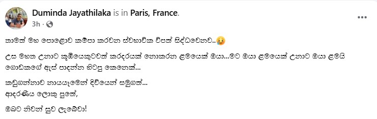 ඒ අතර මේ අනතුරින් අහිමි වුණු තරුණ ජිවිතයක් ගැන අතිශය සංවේදී සටහනක් මුහුණු පොතේ හුවමාරු වෙනවා.