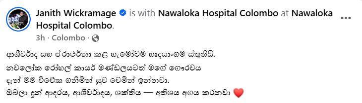 මේ ඔහු මුහුණු පොතට එක් කර තිබුණු සටහනක්…