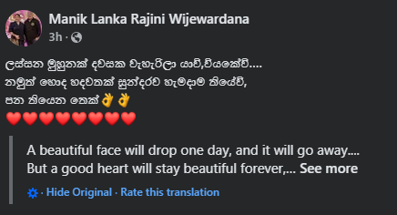 ලස්සන මුහුණක්… දවසක වැහැරිලා යාවී… රටක් ආදරේ කරන මැණික් ෆේස්බුක් ඇවිත් කියන මේ කතාව මොකද්ද ?