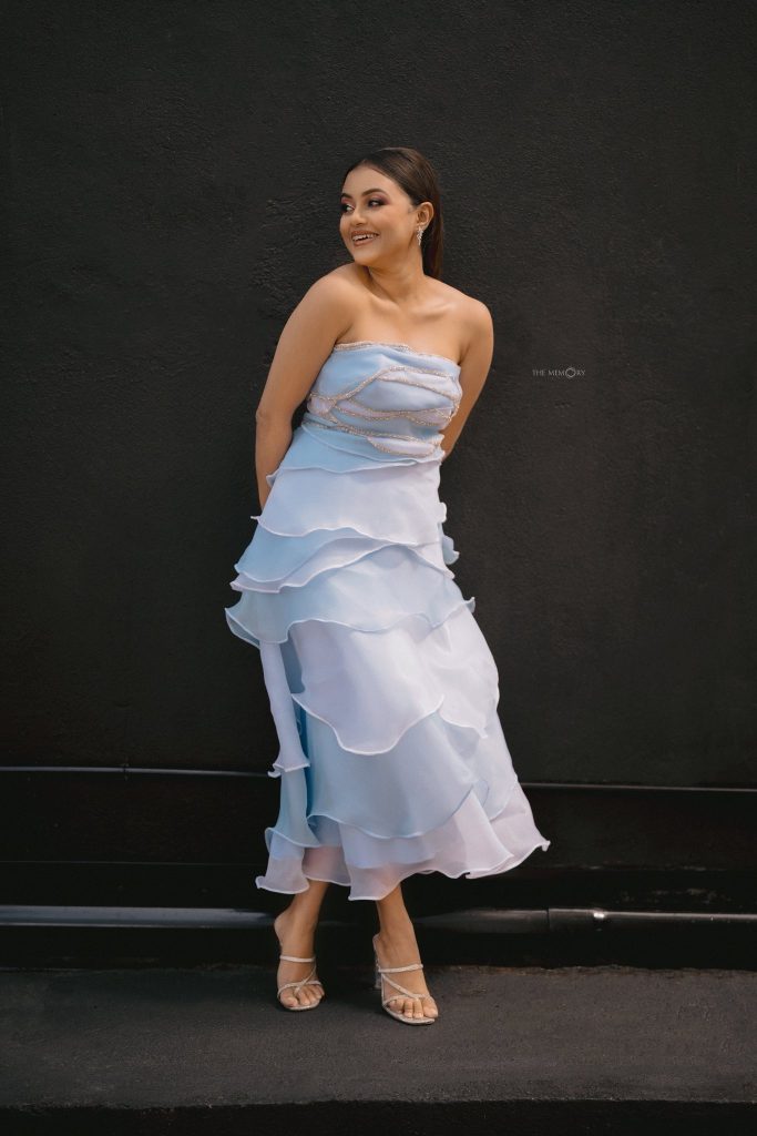 මෙන්න බලන්නකෝ මේ ලස්සන ගවුම් විලාසිතාව ඇයට අමුතුම සුන්දරත්වයක් එකතු කරලා තිබුන අපූරුව..