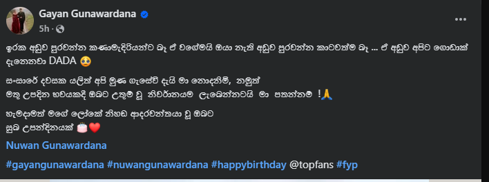 තමන්ගේ පියා මෙලොවෙන් සමුගෙන ගියත් සිය පියාව සිහිපත් කරමින් ඔහු සංවේදී සටහනක් මුහුණු පොතට එක්කර තිබෙනවා.