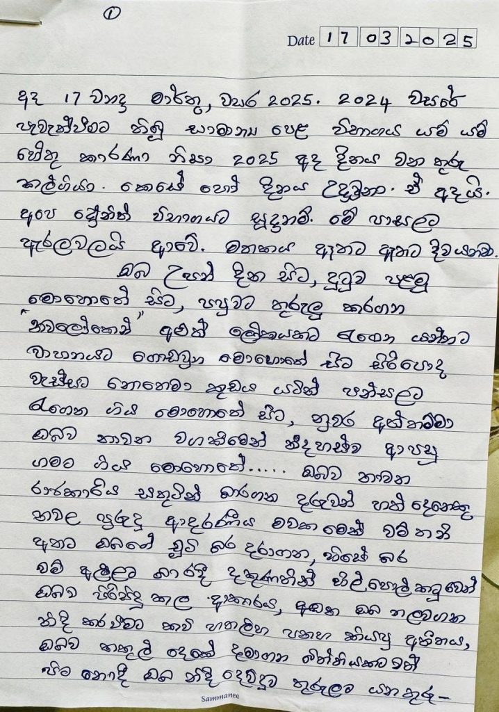 දූ පමණක් නොව අපවද හැඩවූ සීයාගේ ලියුම